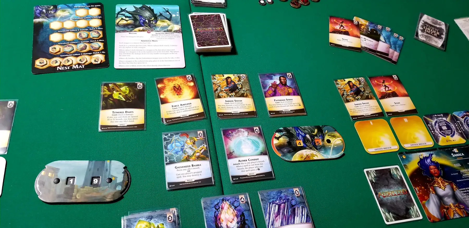 • Aeon’s End: The New Age is a cooperative deck building game where your deck is never shuffled, a variable player order simulates the chaos of battle, and deck management makes all your decisions meaningful. Every game you will face a different nemesis, each with a unique set of abilities requiring a different strategy to be defeated.