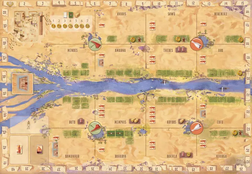 • Everyone knows of the pyramids on the Nile — eternal monuments of a powerful and beautiful culture that can still take our breath away. The players (leaders of a royal Egyptian family) choose their sites, build their pyramids, and thank Amun-Re and the other gods for their bounty.