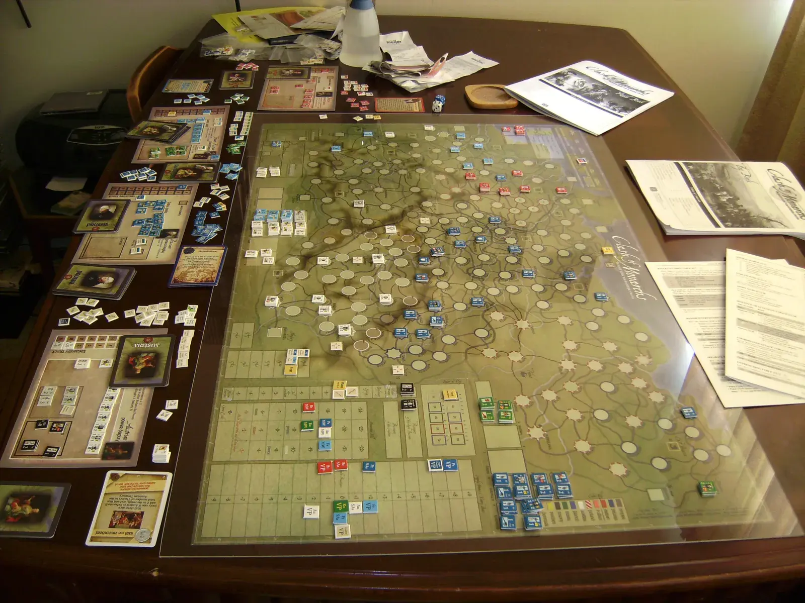 Clash of Monarchs lets two to four players recreate the titantic struggle that raged across Europe and the world, pitting Frederick the Great’s Prussia and its Hanoverian allies against Maria Theresa’s Coalition of Austrian, French, Russian, Saxon, Swedish, and Holy Roman Empire forces. Each player directs the effort of one or more of the major powers, plus their minor allies, using the card-driven operations and point-to-point movement system of many of GMT’s most highly-regarded games. The cards help players enact Frederick’s pre-war invasion planning, Austrian minister Kaunitz’s diplomatic triumph in the 2nd Treaty of Versailles, the operational ascendancy of Prussian and Hanoverian light troops, formation of the Austrian General Staff, huge financial loans, court intrigue at Versailles, Vienna, and St. Petersburg, and dozens of other key political, economic, and military events. COM also uses split decks, which foster play of each power’s events in two phases -- Early War (usually through mid-1758), and Wider War (1758 to conclusion) – and allow a multi-player game to use exactly the same rules as a 2-player contest. COM augments the CDG system with a Colonial Conflict sub-game, a fully-integrated treatment of light unit operations, and a Fortunes of War chit pull, which varies the occurrence and/or timing of events beyond players’ control each year -- severe weather, desertion, attrition, possible deaths of English king George II, Empress Elizabeth of Russia, et al, and Madame Pompadour’s political influence over the French commanders, to add further uncertainty and drama to the campaigns.