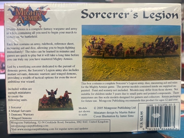 • The sinister Sorcerer's Legion is an unholy force of horrors bound together by the will of a mighty spellcaster. Hordes of twisted, mutated servants that are slaves to the Sorcerer's every whim form the shambling core of the force. They are augmented by the terrifying demonic warriors and winged demons that are held in thrall by the Sorcerer's powerful magic. The lord and master of this legion of monsters is himself a potent foe on the battlefield and is determined to conquer all those who dare stand in his way!