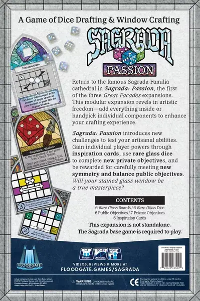 Named after the Sagrada-Familia facades, Sagrada: The Great Facades is a series of expansions to be released in three parts: Passion, Life, and Glory. Each part of the expansion contains modules of content that players can add individually or together to their games of Sagrada.