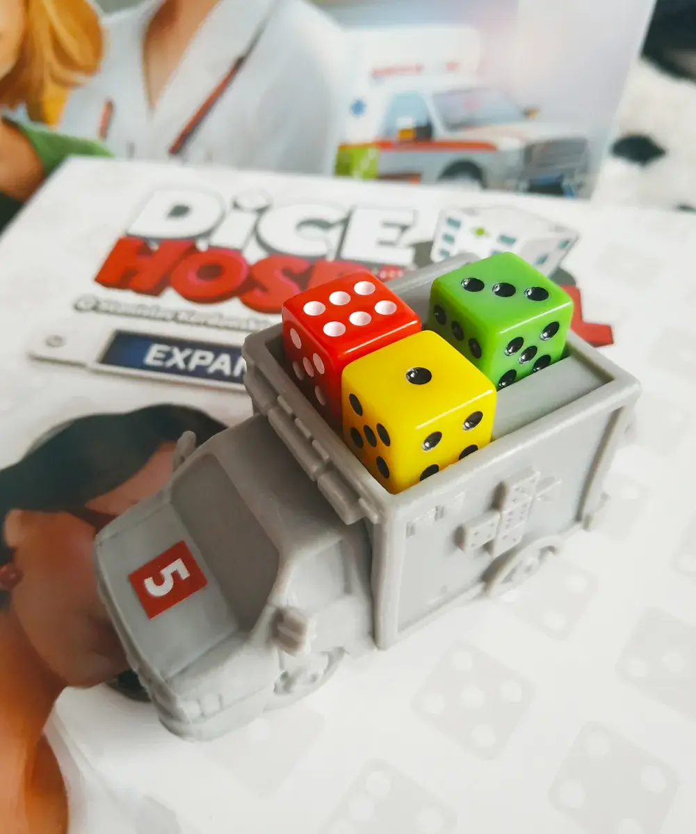 • The deluxe add-ons include five 3D ambulances, the experimental medicine mini expansion pack, wooden tokens for the blood bags and fatality tokens, and a build your own hospital-themed dice tower!