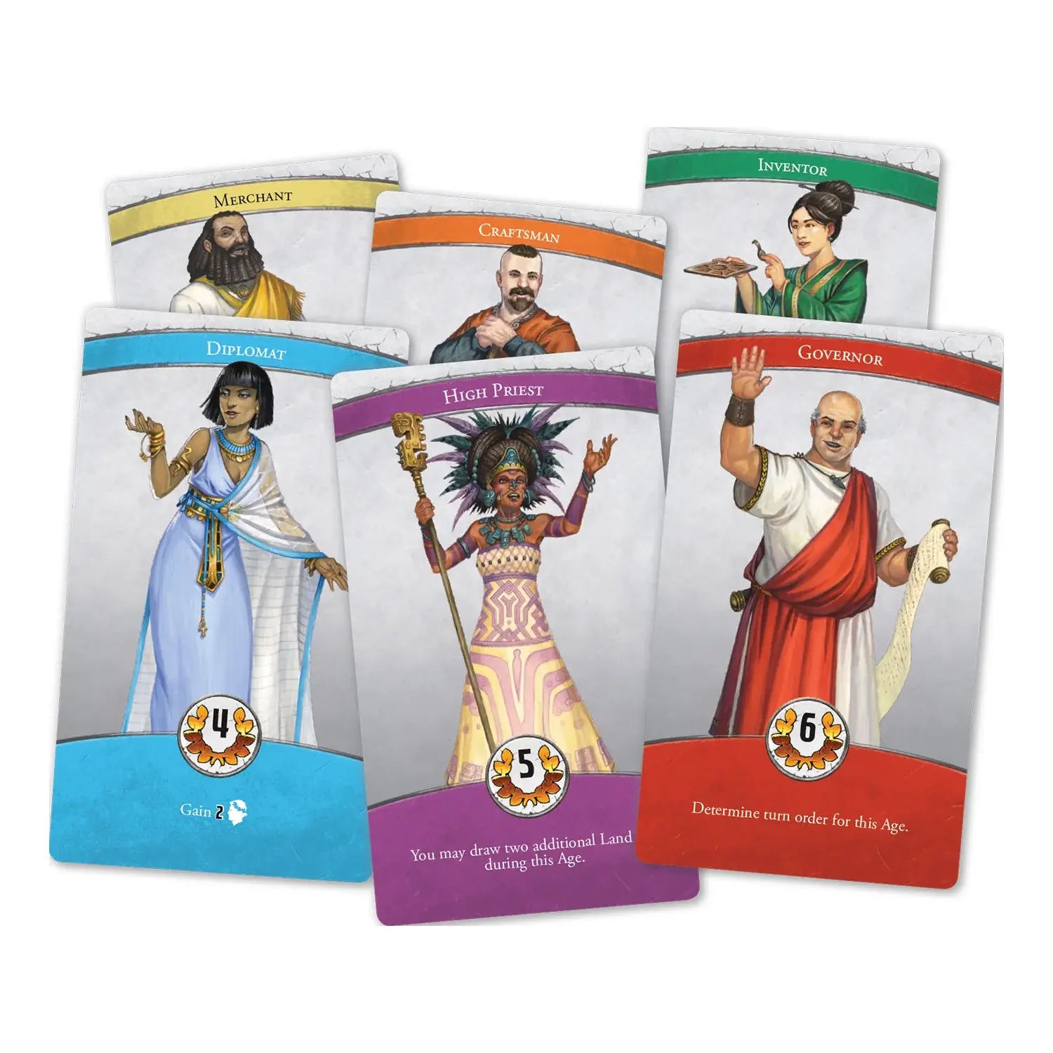Place your triangular dominos carefully to expand your population and obtain the knowledge that will determine how your society is shaped over time. You can use this knowledge to build cities and master skills, thus creating the legacy for which your civilization will be remembered. Each time you master a skill, it becomes one of the pillars of your society, opening doors to new possibilities and increasing your power. The player with the most points at the end of the game wins!