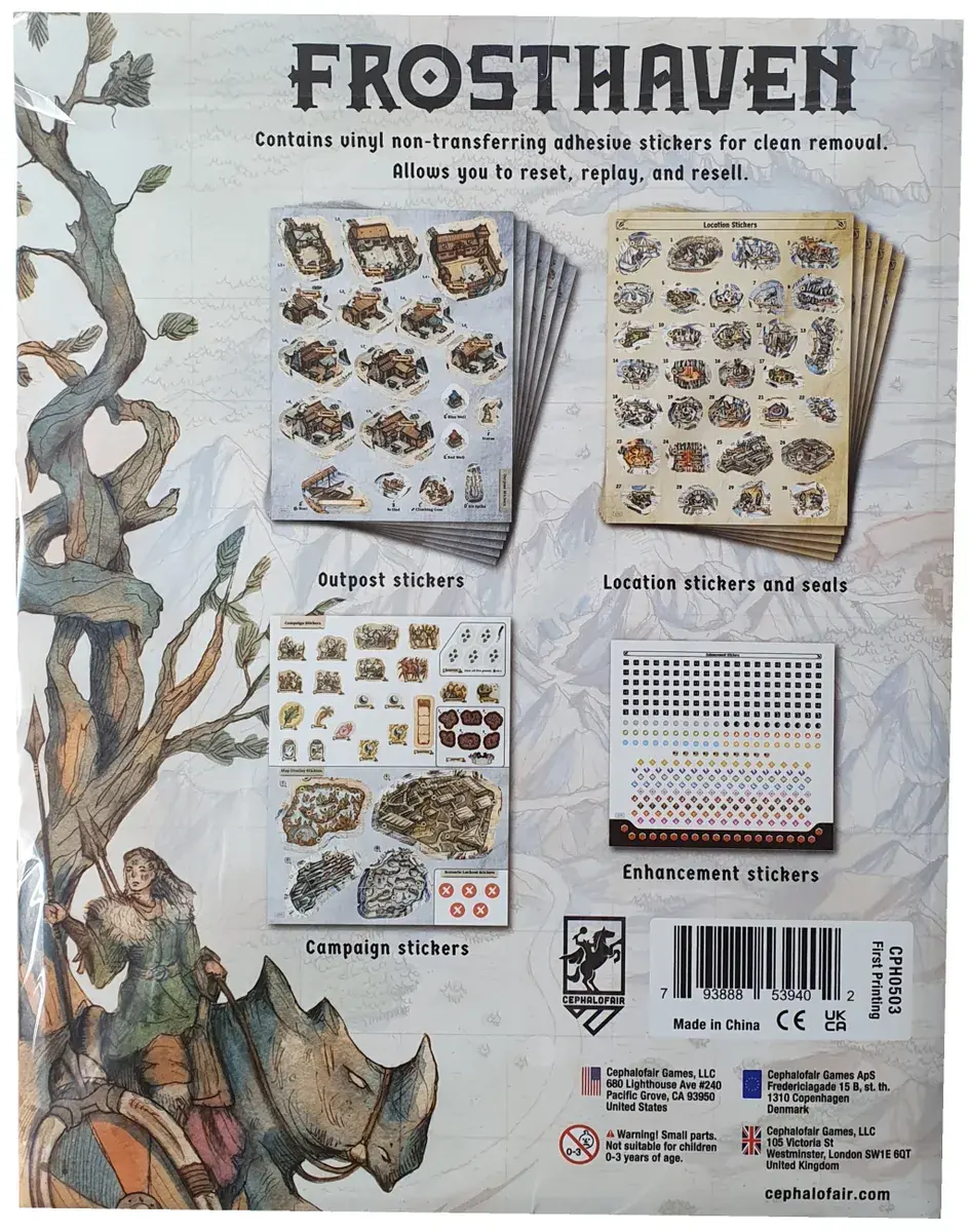 • This set of vinyl stickers replaces all the normal ones in Frosthaven. If you don’t like the permanence of normal stickers, these vinyl stickers can be removed at any time with no damage to the components.