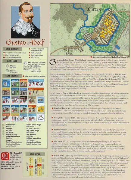 The fourth installment in this series is a tactical battle game featuring five battles from the career of one of the Great Captains of History, King Gustav II Adolf the Great of Sweden. In his brief career, he catapulted Sweden to the forefront of European power politics. This volume sets it focus on the rise and climax of Gustav Adolf's military system.