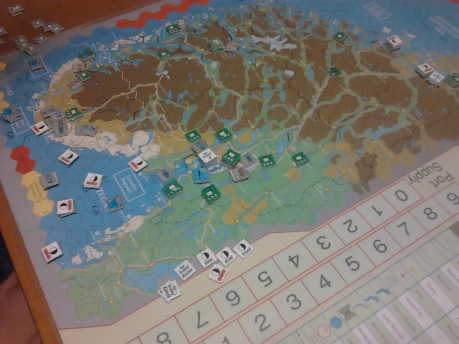 Game counters portray the German, Norwegian, British, French and Polish armed forces as battalions and companies of ground units, and squadrons of aircraft, while naval units are either individual combat ships of cruiser size or larger, or groups of smaller vessels.