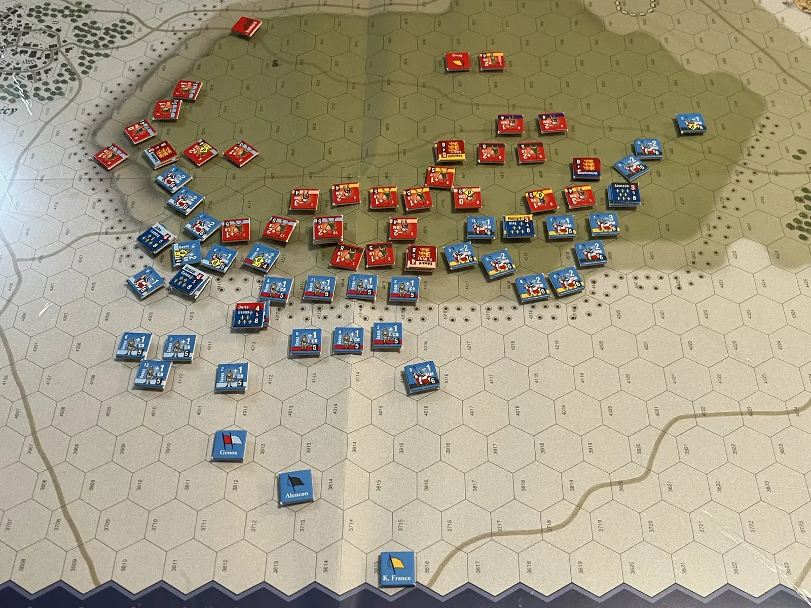 The units feature longbows, crossbows, men-at-arms (mounted, dismounted, and unhorsed), hobilars, genitors, nasty Scots with axes, and even a couple of bombards! And the commanders! The great English King, Edward III and his son, The Black Prince, Wallace and The Bruce, Captal de Buch, and a host of kings. Each and every one a Man of Iron.