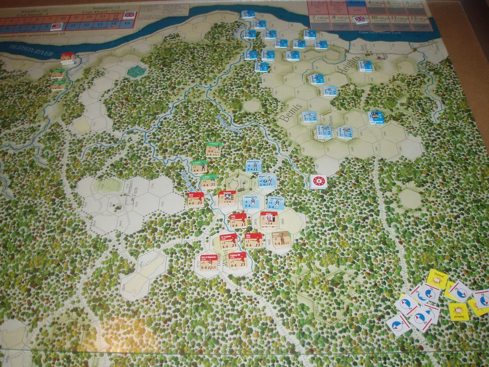 It's the 19th of September, 1777. Do you, as the British, attempt to storm the prepared American positions on the high ground at Bemis Heights in order to open up the River Road and the most direct route to Albany? Or do you attempt to turn the American left where intelligence reports the American defenses are incomplete and the ground favors your approach? How will you employ the large number of Hessian mercenaries in your army? Will their performance match their reputation?
