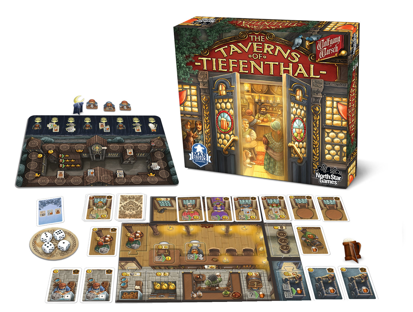 • THE TAVERNS OF TIEFENTHAL combines dice placement with deck building to create a challenging and accessible game for all skill levels a hallmark of all Wolfgang Warschs games. With multiple ways to expand the game, TAVERNS has hours and hours or replayability.
