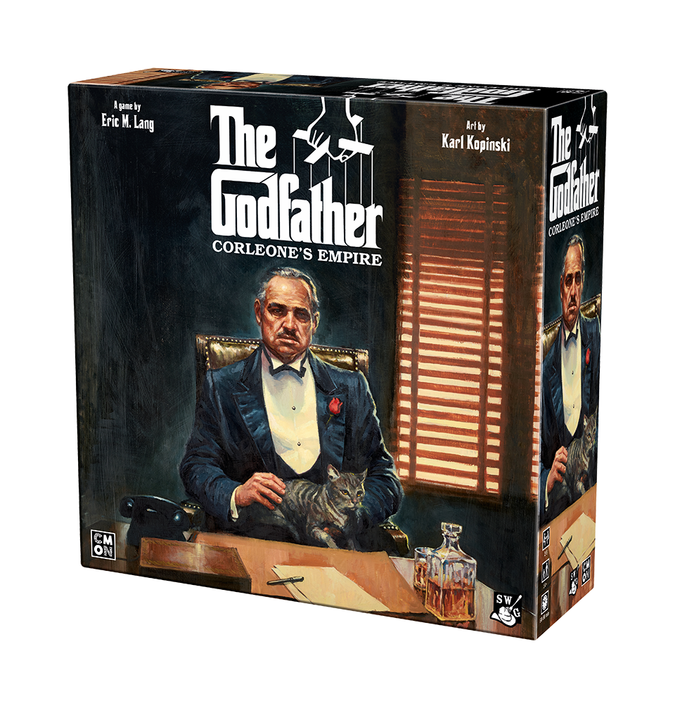 • Designer Eric Lang, known for his "dudes on a map" games, describes The Godfather: Corleone's Empire — a standalone big box board game with high-quality miniatures — as "thugs on a map".